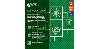 En el marco del proyecto INTERCOONECTA impulsado por AECID, FECYT organiza una sesión online en la que se abordarán los procesos de evaluación mediante el uso del Currículum Vitae Normalizado con el objeto de dar a conocer el estándar CVN entre los países del entorno iberoamericano en el ámbito del fortalecimiento de las infraestructuras digitales y más, concretamente, en lo referido a la evaluación de los méritos curriculares.