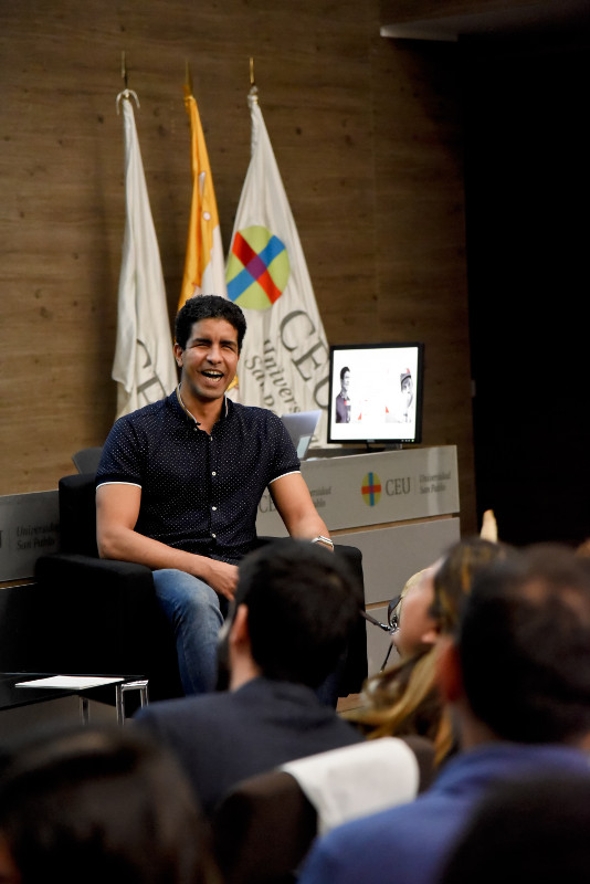 Después de esta presentación el primer ponente, Josef Ajram, intervino hablando a los estudiantes de esfuerzo, de cómo emplear el tiempo en su vida, de cómo crear su marca personal, de no tener límites para afrontar los retos que la vida les ponga delante y de cómo deben formarse para afrontar los cambios del futuro.