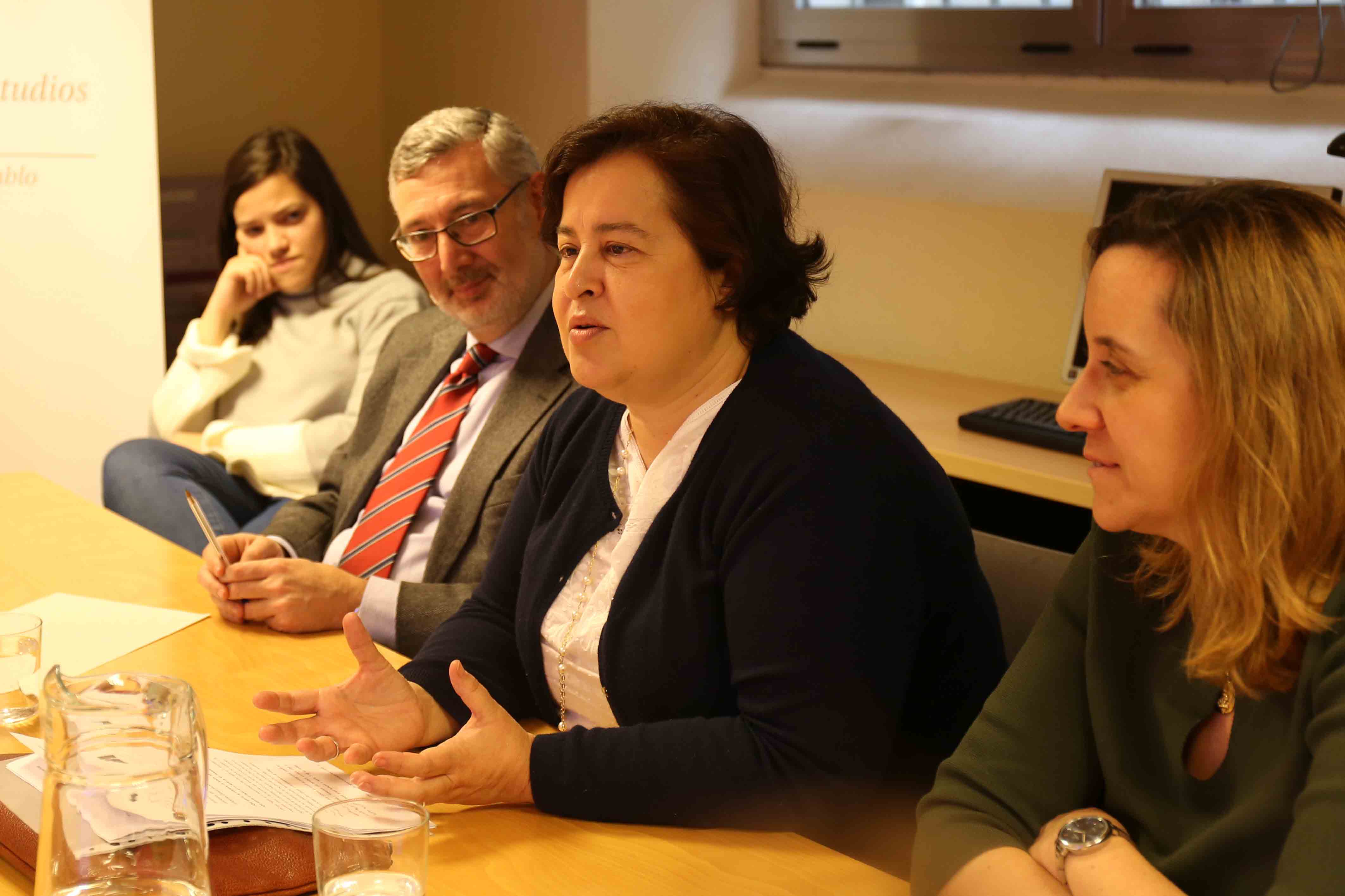 El Instituto CEU de Estudios de la Familia ha celebrado la segunda sesión de su Seminario Permanente. La psicoterapeuta y médico de familia Teresa Suárez ha sido la encargada de impartir este segundo encuentro del curso titulado: 'La masculinidad perdida'. Entre los asistentes, han acompañado a la doctora Suárez el director del Instituto, Elio Gallego; y la secretaria académica del Instituto, Carmen Sánchez.