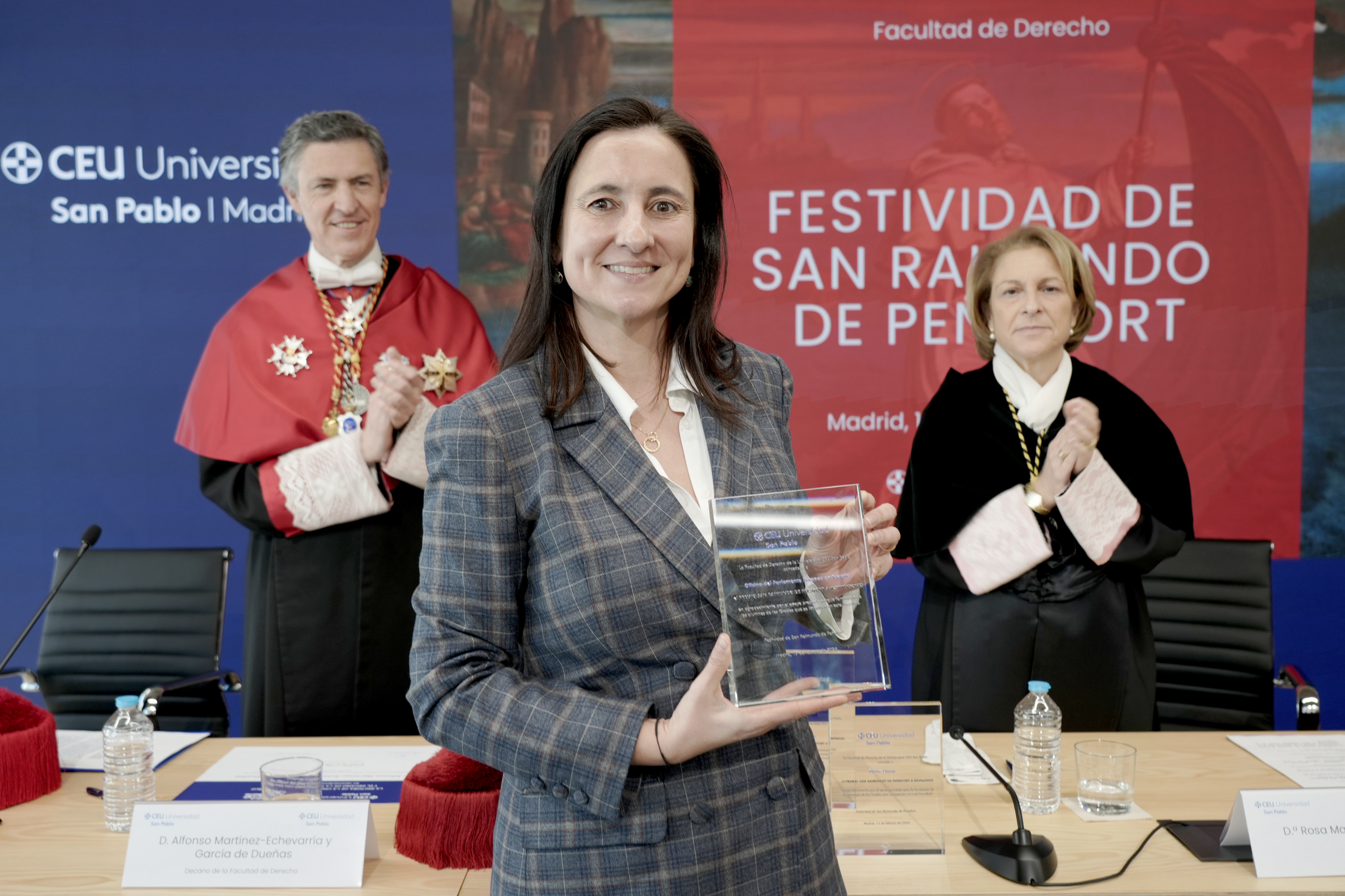 de Derecho ha celebrado la festividad de su patrón, San Raimundo de Peñafort, con un acto académico en el que se ha hecho entrega de la Placa de la Facultad a la Oficina del Parlamento Europeo en España, al despacho de abogados Pérez-Llorca y a la empresa Ingram Micro.