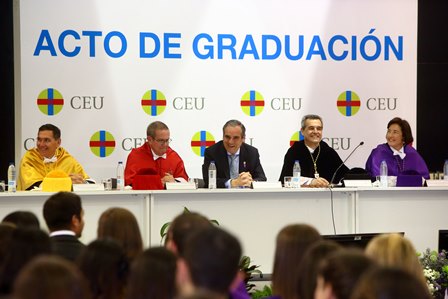 El presidente del Consejo General de Colegios Oficiales de Farmacéuticos, Jesús Aguilar, ha sido el padrino de Graduación de los alumnos de la Facultad de Farmacia de la Universidad CEU San Pablo en un acto celebrado en el Campus de Montepríncipe.