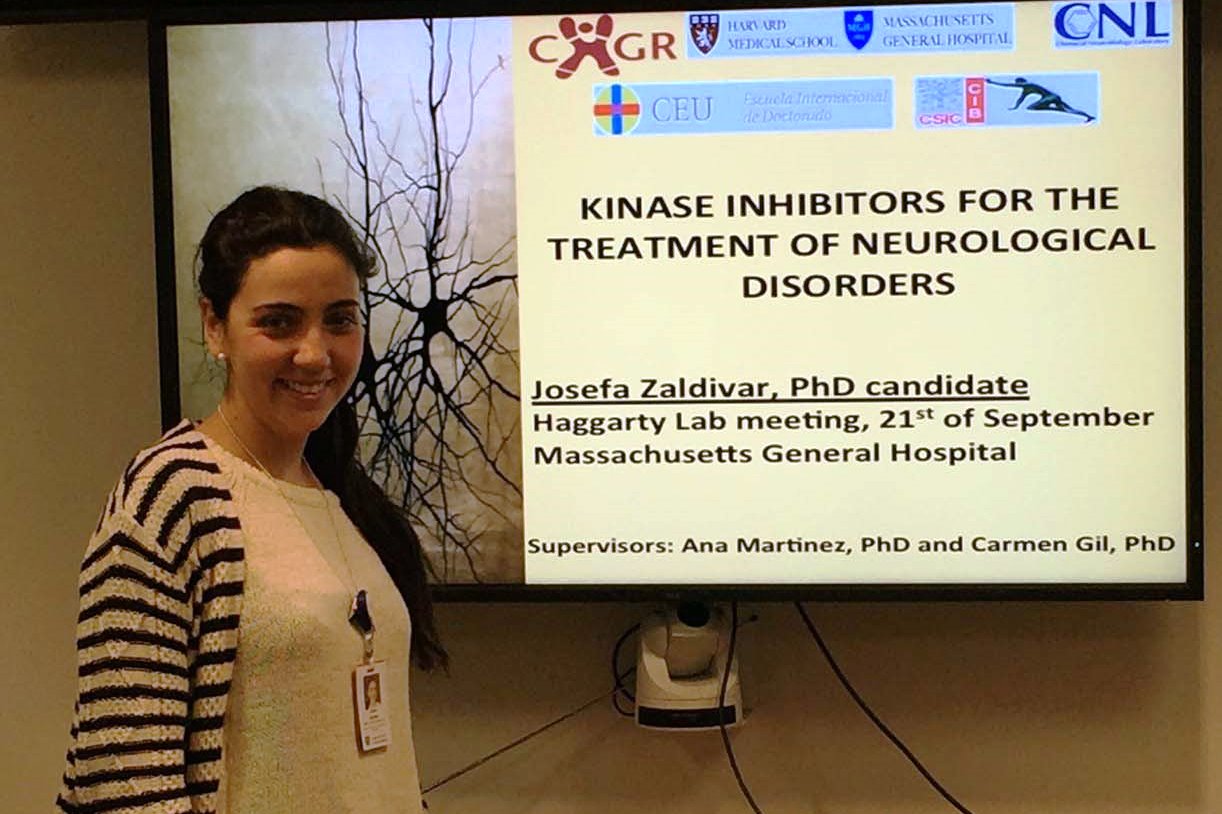 Actualmente me encuentro en la Universidad de Harvard, en el laboratorio del profesor Stephen J. Haggarty, en el Hospital General de Massachusetts, aprendiendo una de las técnicas que os cuento en el vídeo. Y a pesar de que hace un frío terrible, estoy encantada. Estoy aprendiendo y disfrutando muchísimo y muy agradecida de poder tener esta oportunidad. Aquí he podido reafirmar mi vocación como científica y darme cuenta de la gran suerte que tengo de poder dedicarme a una profesión tan apasionante.