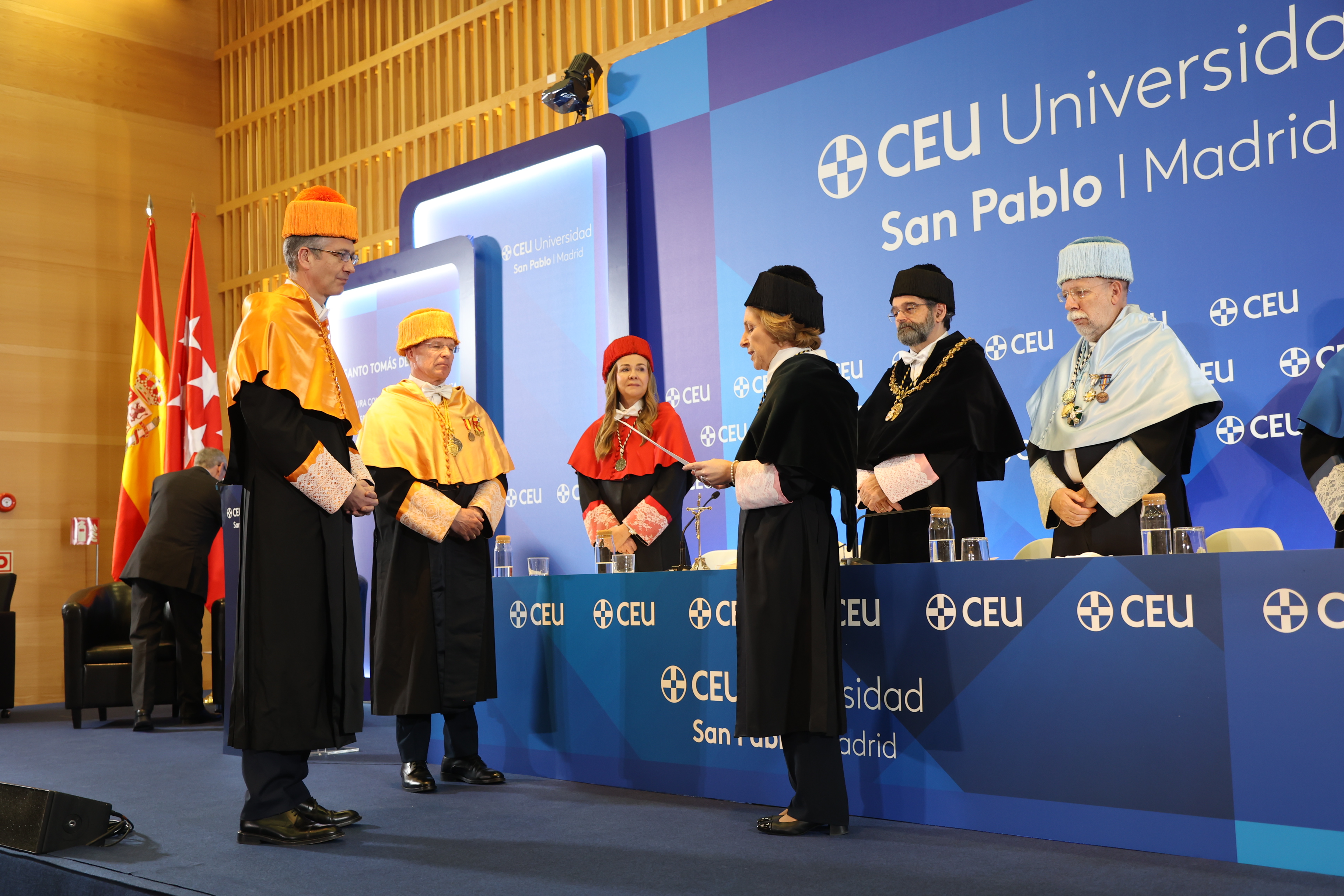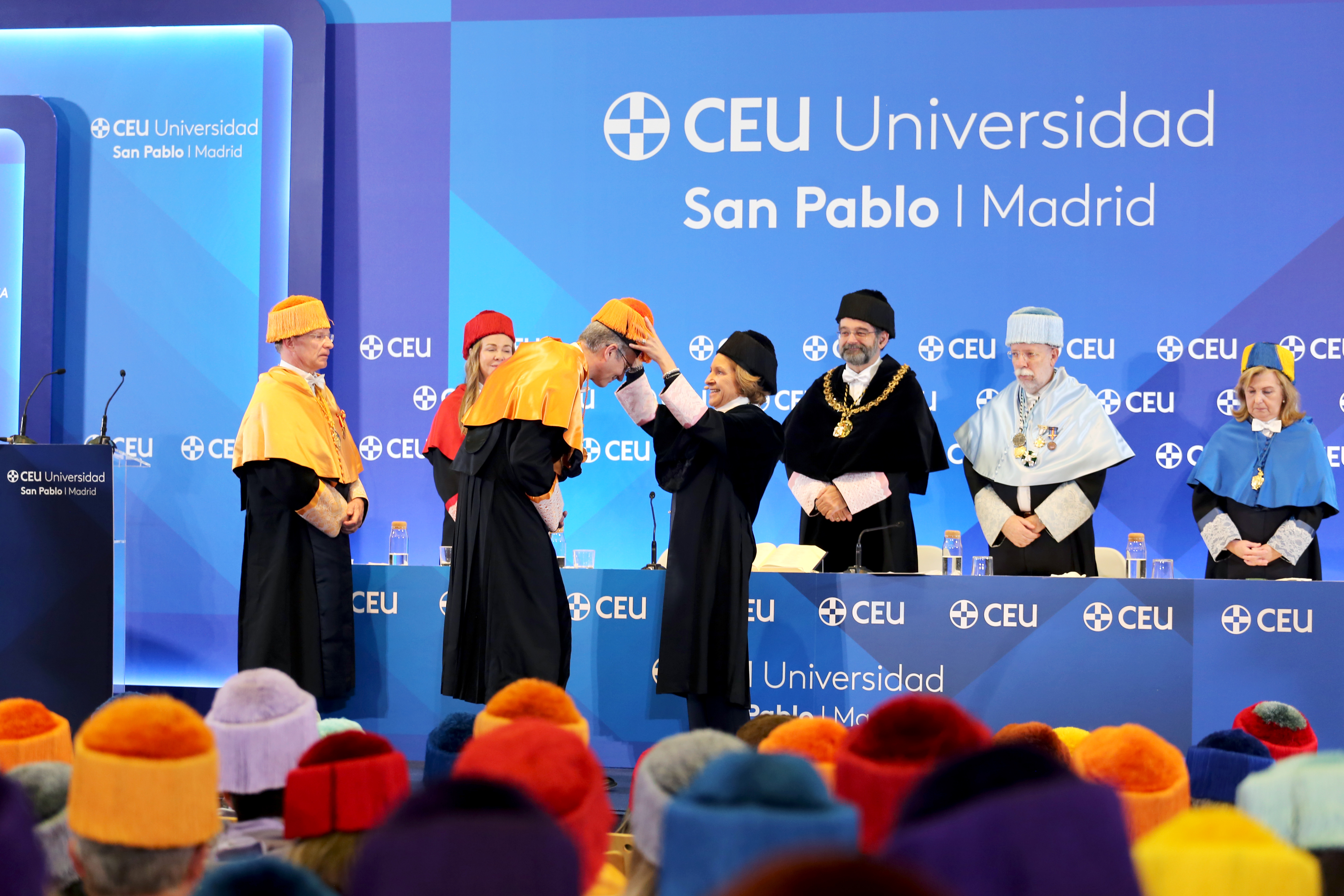 In her speech, Visiedo underlined that “his appointment as Doctor Honoris Causa emblematizes the profile of our University, representing in condensed form our project for the coming years: to be a university firmly committed to higher education and to relevant research that generates new knowledge and innovation for transfer to society; but also a university closely connected to the business world, concerned with the employability of its students, helping them to build their life projects and, through them, to contribute to the progress of companies and institutions.”