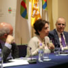 Victoria Prego ha estado acompañada por el presidente de la Comisión de Formación y Empleo de la Asociación de la Prensa en Madrid (APM), Alfonso Javier Sánchez; y por el decano de la Facultad de Humanidades y Ciencias de la Comunicación, José María Legorburu.